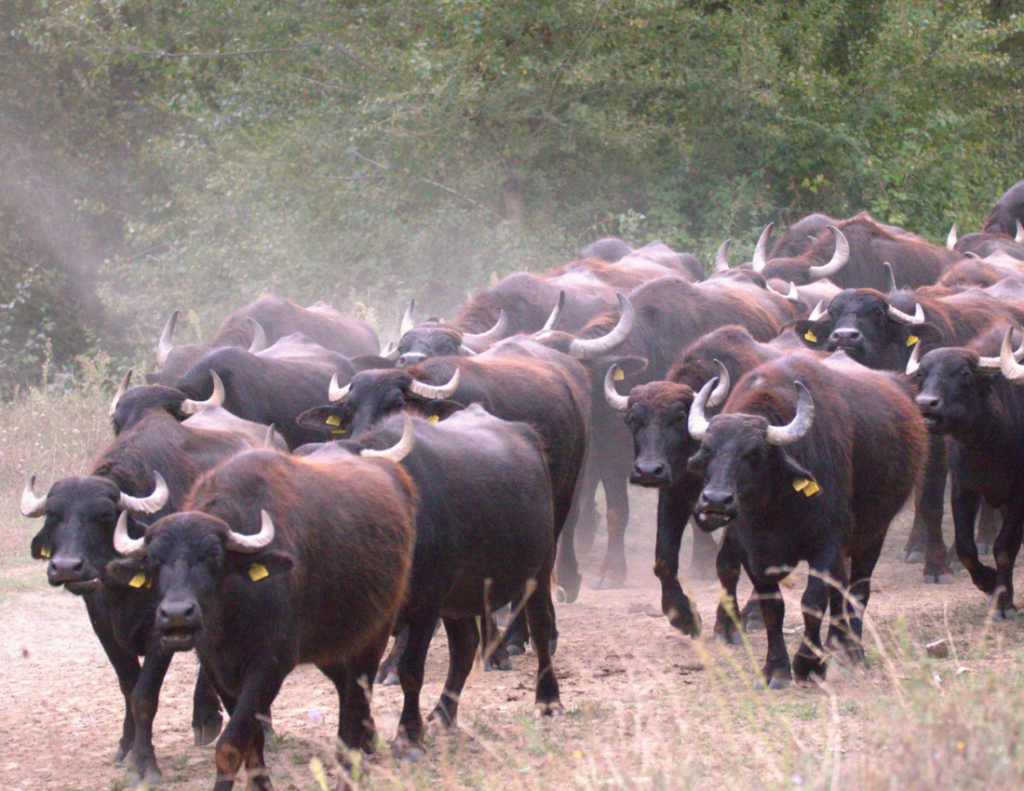 Καθώς θα κινούμαστε νότια κατά μήκος του αναχώματος, θα έχουμε την ευκαιρία να συναντήσουμε μια μονάδα εκτροφής βουβαλιών,Τα βουβάλια, ένα από τα πιο αναγνωρίσιμα στοιχεία της λίμνηςμ αποτελούν αναπόσπαστο κομμάτι του τοπίου και της παράδοσης της περιοχής. Ο ελληνικός νεροβούβαλος εκτρέφεται εδώ και δεκαετίες, βρίσκοντας ιδανικές συνθήκες στα υγρά λιβάδια και στα ρηχά νερά της λίμνης. Τα ζώα κινούνται ελεύθερα, βόσκουν στις όχθες και συχνά δροσίζονται μέσα στο νερό, ενώ συμβάλλουν και στη διατήρηση του οικοσυστήματος.