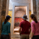 Στη συνέχεια κινούμαστε νοτιοδυτικά, ακολουθώντας χωματόδρομους ανάμεσα σε ανθισμένες ροδακινιές που μετατρέπουν το τοπίο σε ένα ατελείωτο ροζ χαλί. Θα περάσουμε έξω από τον αρχαίο Μακεδονικό Τάφο των Λύσωνος και Καλλικλέους, που χρονολογείται περίπου μεταξύ 250 και 150 π.Χ. και αποτελεί κορυφαίο δείγμα ελληνιστικής ζωγραφικής. Πρόκειται για διθάλαμο καμαροσκεπή τάφο που χρησιμοποιήθηκε από την οικογένεια του Αριστοφάνη για πέντε γενιές, με το εσωτερικό του να κοσμείται από 22 λαξευμένες θήκες για τέφρα και τοιχογραφίες με μακεδονικά όπλα, κράνη και ασπίδες, σε εντυπωσιακή τεχνική προοπτικής. Λόγω της ευαισθησίας των χρωμάτων, το μνημείο παραμένει κλειστό για το κοινό.